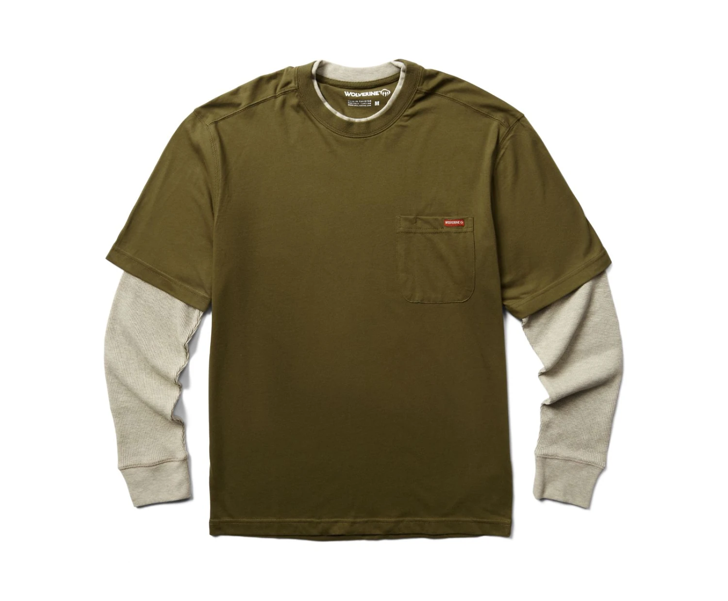 • Faux double layer waffle knit sleeves